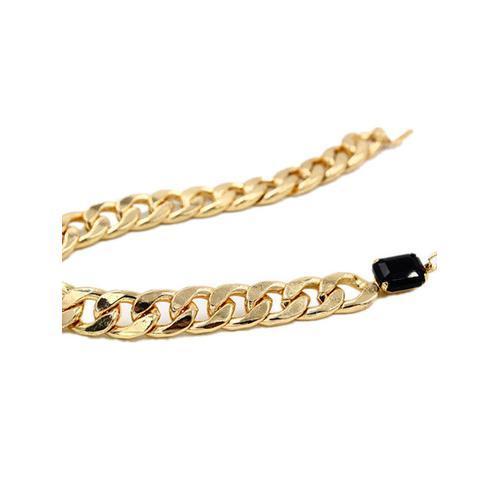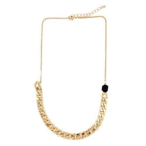 Black Stone Embellished Chunky Chain Drop Necklace
