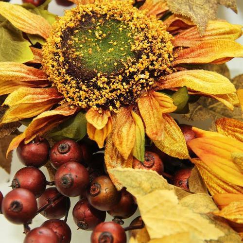 Wreath is beautifully accented with a mix of realistic autumn leaves sunflowers and berries Unlit For indoor use only Dimensions: 24" diameter (measured from outermost tip/edge to outermost tip/edge across...