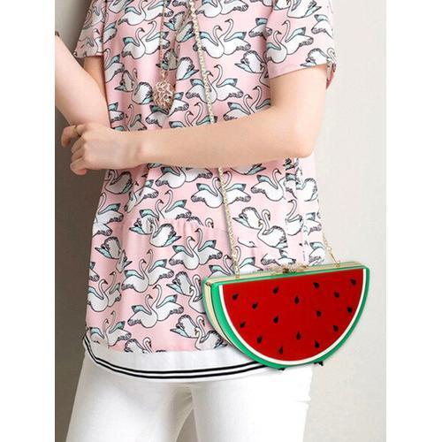 Red Watermelon Shape Box Clutch Bag