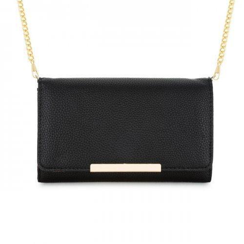 Black Faux Leather Clutch With Gold Hardware Button Closure Card Slot Inserts and Detachable 47 Gold Chain Strap. Pebbled Outer.. Gold hardware elevates this clutch from simple to sophisticated. Whether out to dinner or with a group of girlfriends this is the perfect accompaniment for a special night out! Comes with a detachable 47 gold chain strap. Our clutch selection is stylishly designed without sacrificing comfort. We offer different choices of fabric color and style. Browse our selection and you'll definitely find your unique look.