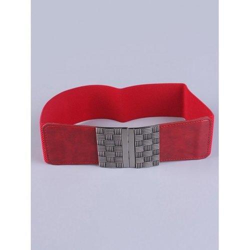 Coat Wear Weaving Metal Basket Buckle Stretch Belt - Red