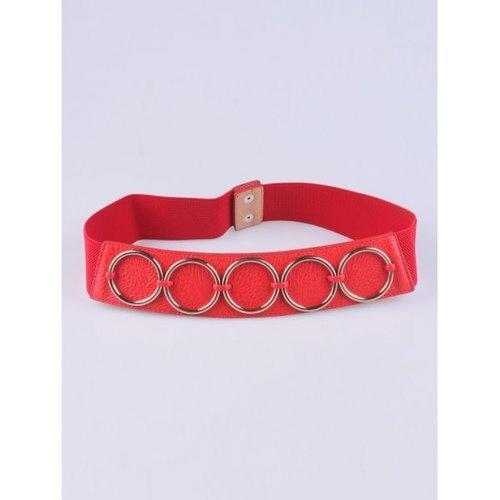 Coat Wear Tiered Matel Ring Buckle Stretch Belt - Red