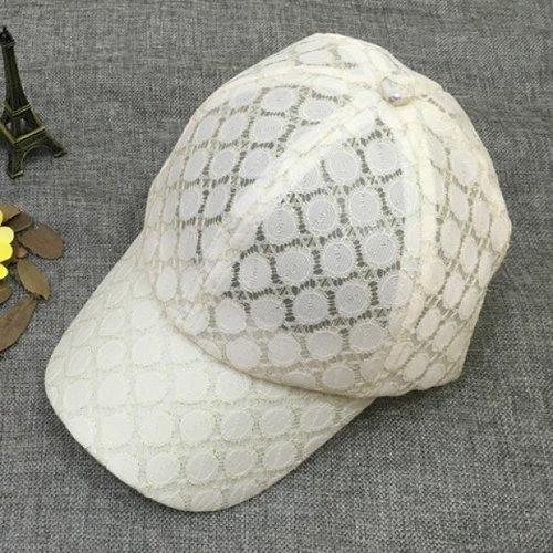 Chic Solid Color Breathable Polka Dot Lace Baseball Cap For Women - Off-white