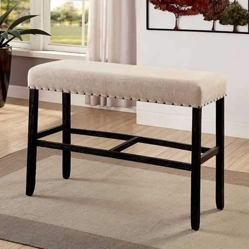 Sania II Rustic Style Bar Bench, Antique Black And Ivory