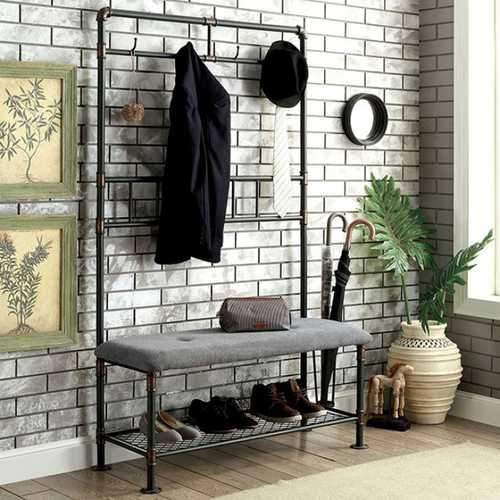 Come Home After A Long Day At Work And Be Greeted By This Charming, Industrial Style Bench. The Pipe-Inspired Frame Features Fun Copper Accents, Several Handy Hooks And A Bottom Mesh Shelf That'S Perfect For Organizing Shoes, Jackets And More.