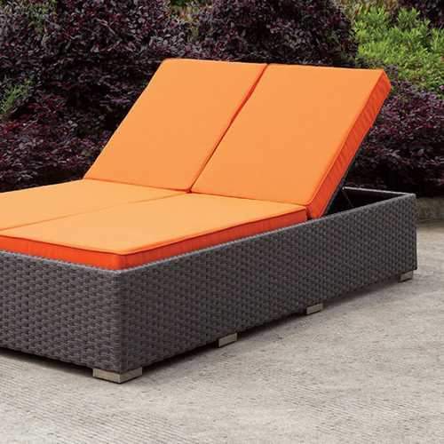 Lounge Back And Soak Up Some Sun In Style. Whether You'Re Spending Some Quality Time With A Friend Or Loved One, This Chaise Will Accommodate Two With Its Adjustable Split Back Structure. The Bright Orange Cushions And Light Brown Wicker Frame Are Undeniably Chic And Durable Enough To Stand Up To Anything The Outdoors Might Bring.