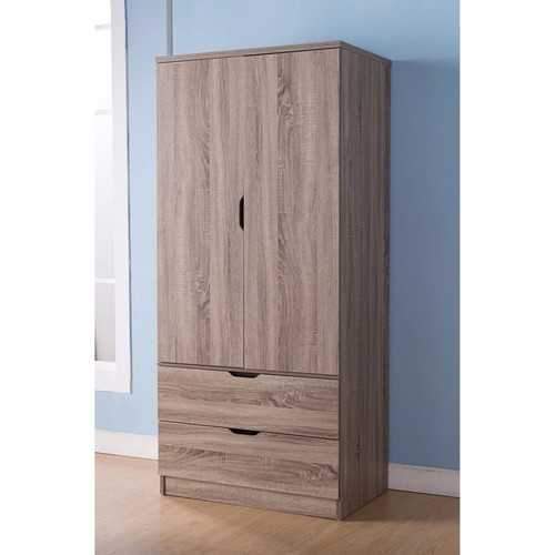 Sophisticated brown finished two door wardrobe with two drawers on Metal glides. It gives hanging clothing storage. This brown finished lavish wardrobe Crafted for compact homes which gives perfect look to your bedroom. you can enrich the beauty of your bedroom with this lavish wardrobe.