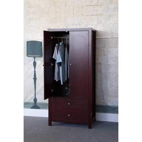 This commodious cherry brown finished two magnet closing door wardrobe with two drawers would truly enhance your bedroom. It has two storage drawers with round shaped glides where you can store accessories and has a inner hanging rail. This chic wardrobe makes an outstanding storage and provides ample room for storing your clothes in good condition. Enrich the beauty of your bedroom with this elegant wardrobe.