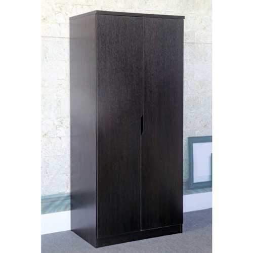Sophisticated Dark Brown Finish 2 Magnet Closing Door Wardrobe With Hanging Rail.