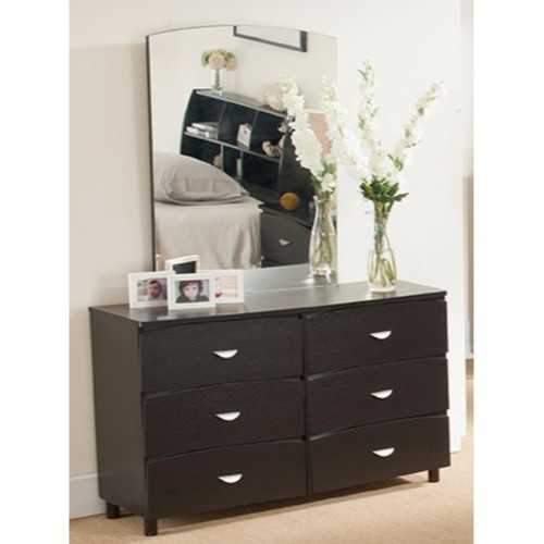 This spacious dark brown finish dresser with six drawers gives enough space to keeping your things properly. This roomy dresser seek the attention in your bedroom. Elegantly designed dresser with six storage drawers with metal glides, adorn to ameliorate the exquisiteness of your bedroom. This lovely dresser is made with solid wood and wood veneer. It also has a top display deck where you can keep your cosmetics on it.