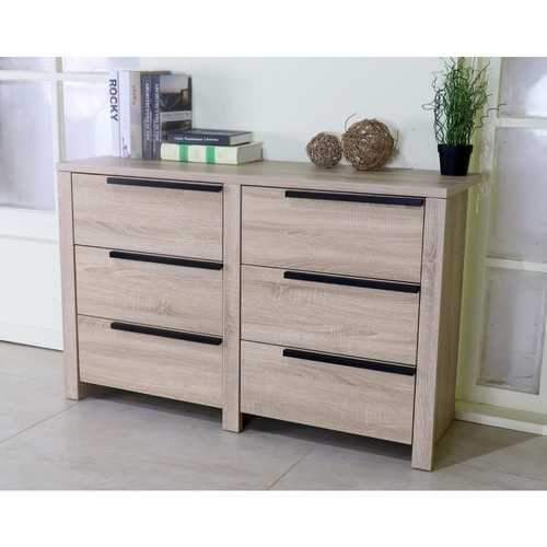 You can have extra storage space for your bedroom ornamentation while adding a touch of contemporary flair with help from this contemporary style dresser. This dresser comes in a brown finish and is made from solid wood. It features mirror inserts on the top drawer front panels and sand-blasted lower panels. It has six storage drawers which are equipped with easy pull metal glides.