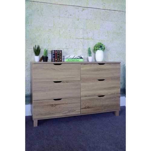 This dresser comes in a brown finish and is finished from solid wood and wood veneer. You can have superfluous storage space for your bedroom decor while adding a touch of contemporary flair with help from this contemporary style dresser. It features mirror inserts on the top drawer front panels and sand-blasted lower panels. Dresser features with six drawers which are equipped with easy pull metal glides.