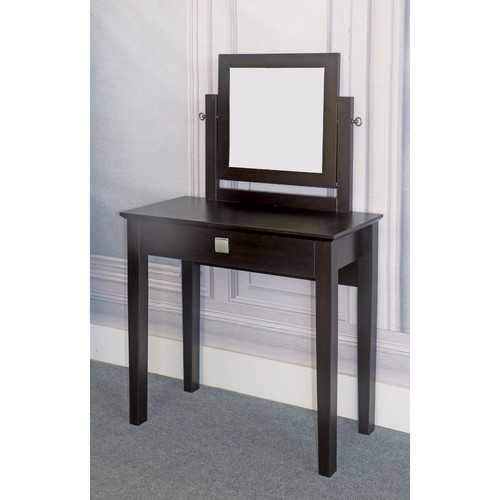 With sophisticated style and a white finish, the dresser table is sure to enhance your decor with a contemporary design that offers a great display. It is compact in size and features adjustable mirror with a drawer on metal glides. It will be a perfect fit for your kids room and even for small spaces. It has been manufactured in wood and has a dazzling red cocoa (dark Brown) finish making it look even more enchanting.