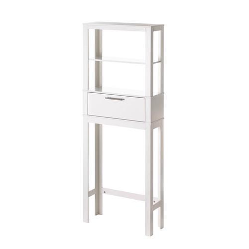 In an instant, this accessory creates display and storage space in even the smallest of bathrooms! Two display shelves are perfect for soaps, lotions, and any other bathroom accessories, while the compartment below opens from the top and is perfect for keeping things out of plain view. Your powder room will have more space, more storage and more style!Item weight: 26.2 lbs. 23.8" x 9" x 62" high. MDF wood, particle board, melamine, lacquer coating. UPC: 849179017767. Some Assembly Required.