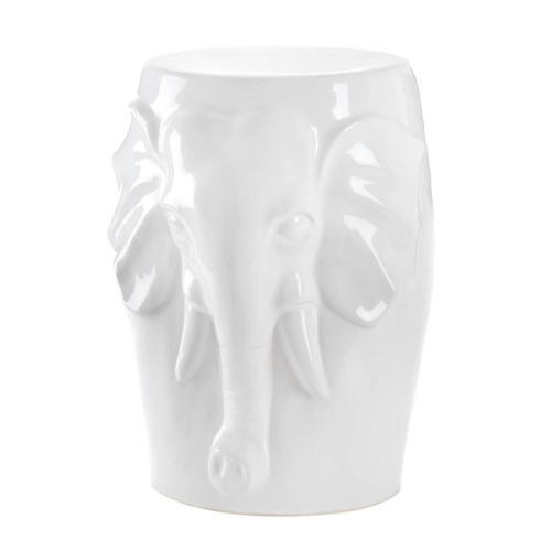 Beauty and function, this decorative ceramic stool has it all! Gleaming white ceramic features an artistic elephant bust. It works indoors and outdoors, and can be used as a set, an accent table, a footstool and beyond!Item weight: 14 lbs. 13¾" x 13¾" x 18" high. Ceramic. 849179020378.