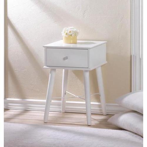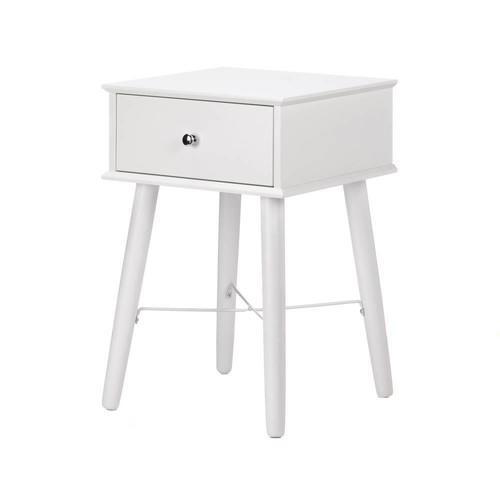 Your hunt for the perfect accent table ends right here! This charming white lacquer table has long legs, a single drawer, and classic style that complements any room. Its the perfect accessory to place next to your bed, your sofa, and more.Weight 17.9 pounds. 15.8" x 15.8" x 23.8". MDF Wood. UPC Number: 849179027278.