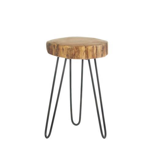 The raw beauty of this accent table will shine when you add it to your room. The top is a slice of acacia wood, and below are three iron rod legs.Weight 10.8 pounds. 11" x 11" x 16.5". Acacia Wood, Iron. UPC Number: 849179028060.