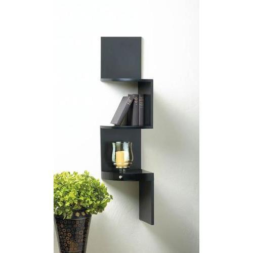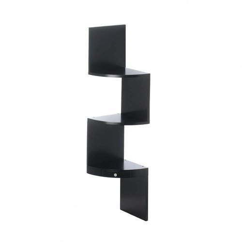 This is the coolest way to transform the corner of your room from wasted space to artistic focal point! This wooden black wall shelf features three small display shelves and the bottom features a miniature drawer. You'll love the way this functional piece of art amplifies the style in your space.Weight 10 pounds. 9.62" x 9.63" x 41.6". MDF Wood. UPC Number: 849179031404.