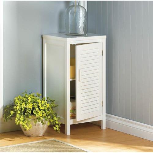 Adding storage to your bathroom is simple with this sleek standing cabinet. Open the slatted door and fill the two shelves with bath towels, bath and body products, and other...