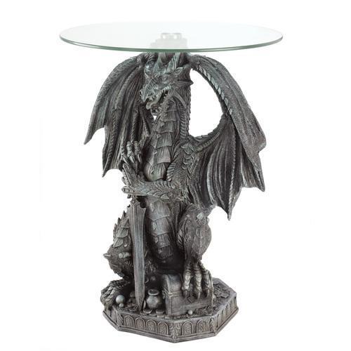 Stunning stone-look statue table features a hissing dragon standing guard over his lords treasure trove. Styled to resemble centuries-old castle gargoyles, this is a worthy decoration for the chamber of...