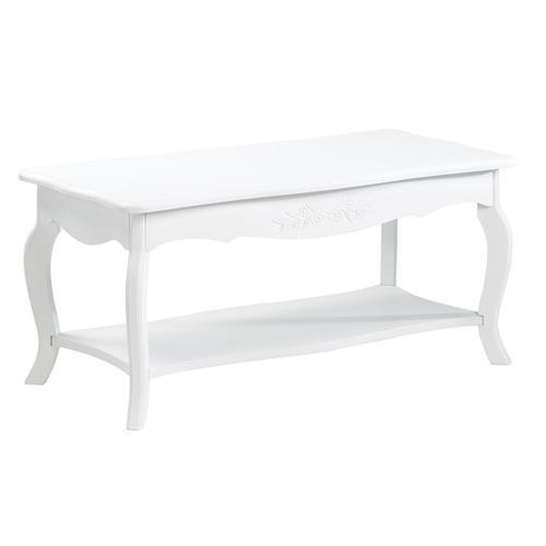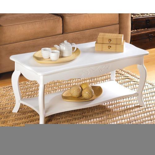 Elegant white coffee table features clean, graceful curves and a soft white finish. A room-brightening accent that adds cottage style romance to any surrounding! Weight 19.6 lbs. MDF wood. Some...
