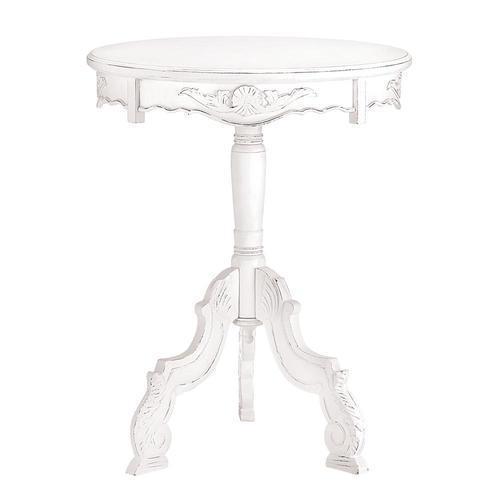 Exquisitely carved flourishes add an air of refinement to this appealing accent table.Weight13 pounds. 23.6" x 23.6" x 29". MDF Wood, Pine Wood. Distressed white finish. UPC Number: 849179005856. Pack...