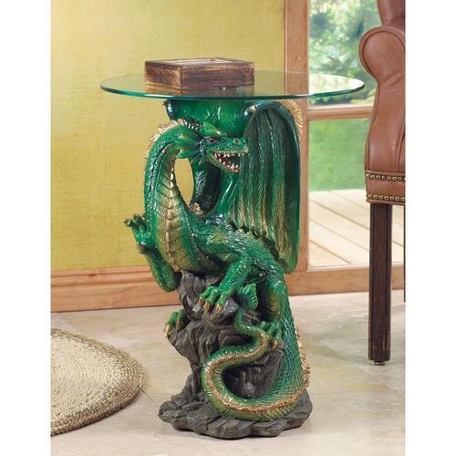 A mystical, fire-breathing beast perches beneath this tempered glass table top, ready to sweep you away to the land of myth and legend.Weight13.6 pounds. 20" x 20" x 24". Polyresin,...