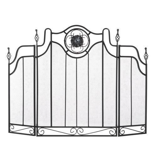 Evocative of the ironwork of traditional Italian artisans, this curvaceous folding fireplace screen features exquisite black cast iron accents.Center panel is 22 1/8" x 30 5/8" high; each side panel is 10 3/8" x 25" high.Weight8.5 pounds. 22.1" x 10.4" x 30.6". Cast iron, Metal mesh. UPC Number: 849179000417.