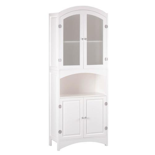 This wood cabinet is a stately home for towels, sheets and more. A classic design refashioned with sophistication using silver-finished magnetic hardware and veiled glass doors. Weight53.6 pounds. 24" x...
