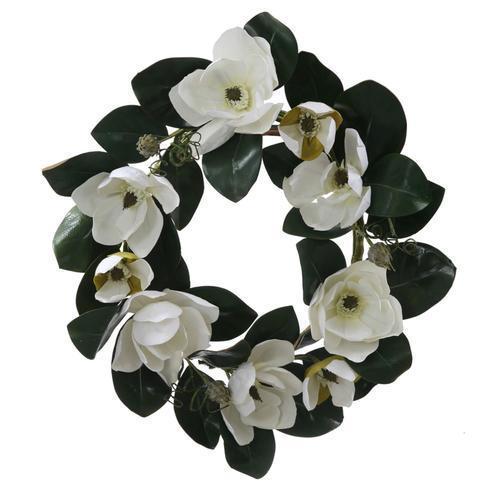 26" White Magnolia Flower and Leaves Artificial Silk Floral Wreath - Unlit
