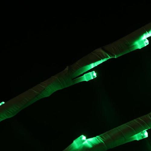 From the Enchanted Garden Collection Features: Set includes six branches Pre-lit with 18 lights per branch Bulb color: green(lights are clear on product but when lit will show color) Bulb size: micro Twig color: white Hand wrapped stems Additional product features: UL listed for indoor and outdoor use Total lighted length: 8' Space between branches: 20" Lead cord: 5' Item is 8' wide and 6' long Black adapter included and stakes included Adapter input: 120 volt AC 60 hertz .08 amps Adapter output: 28 volt AC .107 amps Cannot connect multiple stems together each will require their own power source Material(s): glass bulbs/PVC plastic/various man made materials