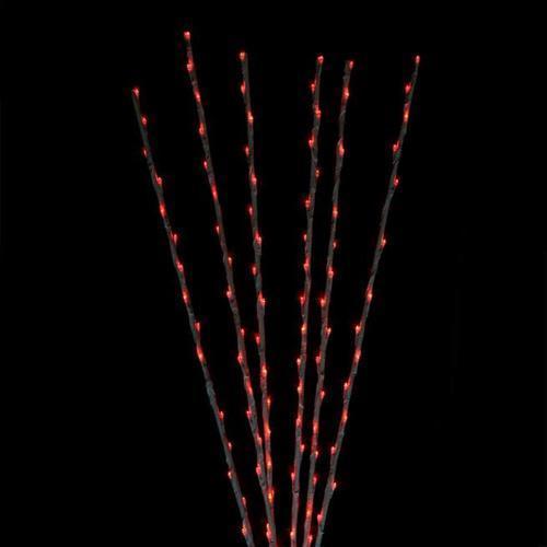 From the Enchanted Garden Collection Features: Set includes six branches Pre-lit with 18 lights per branch Bulb color: red(lights are clear on product but when lit will show color) Bulb size: micro Twig color: white Hand wrapped stems Additional product features: UL listed for indoor and outdoor use Total lighted length:8' Space between branches:20" Lead cord: 5' Black adapter included and stakes included Adapter input: 120 volt AC 60 hertz .08 amps Adapter output: 28 volt AC .107 amps Cannot connect multiple stems together each will require their own power source Material(s): glass bulbs/PVC plastic/various man made materials