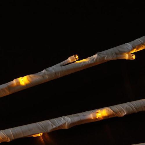 From the Enchanted Garden Collection Features: Set includes six branches Pre-lit with 40 lights per branch Bulb color: yellow(lights are clear on product but when lit will show color) Bulb size: micro Twig color: white Hand wrapped stems Additional product features: UL listed for indoor and outdoor use Total lighted length: 8' Space between branches: 20" Lead cord: 5' Item is 6' tall and 8' wide Black adapter included and stakes included Adapter input: 120 volt AC 60 hertz .08 amps Adapter output: 28 volt AC .107 amps Cannot connect multiple stems together each will require their own power source Material(s): glass bulbs/PVC plastic/various man made materials