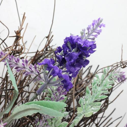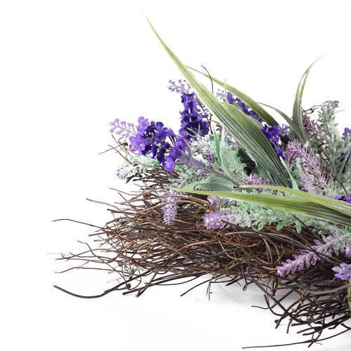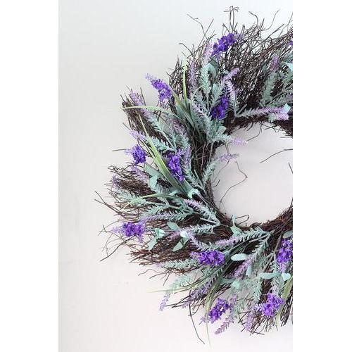 Decadent lavender and heather will add a realistic look to your home decor 1 piece design no assembly required Ready-to-hang on a spiral vine wreath Recommended for indoor use Dimensions: 22" outer diameter (measured from outermost tip to outermost tip)