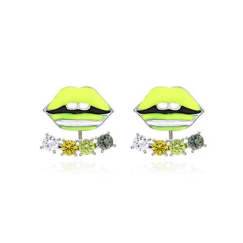 Chartreuse Color Block Jewelled Lip Earrings