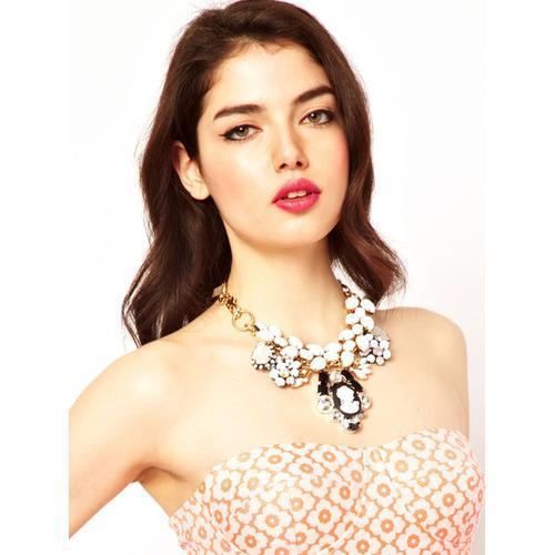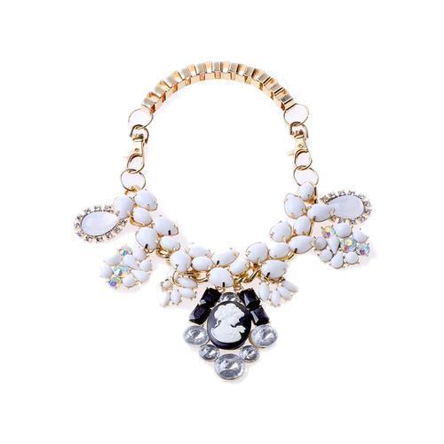 Portrait Charm and Stone Statement Necklace with Box Chain
