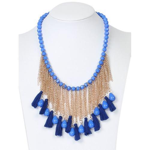 Blue Crystal Tassel Multi Layer Beaded Detail Necklace