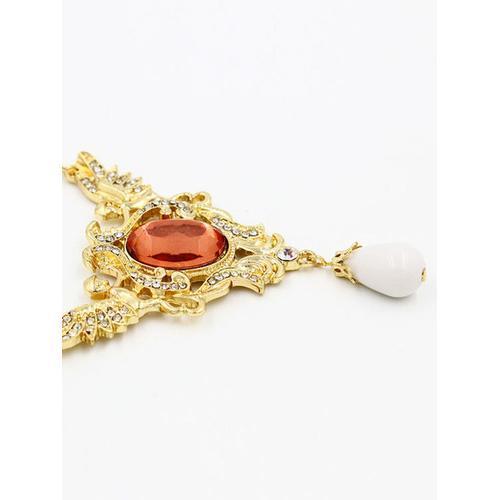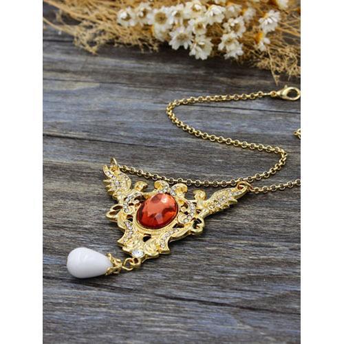 Golden Cut Out Crystal Stone Teardrop Necklace