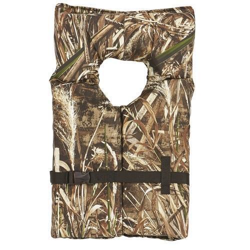 The Onyx Outdoor Adult Type II Life Jacket comes in two colors: Realtree Max 5 (camo) and orange. This life jackets comes is a range of sizes and is designed specifically to provide minimum buoyancy. This sturdy life jackets turns most unconscious wearers face up. Meets minimum requirements with 15.5 lbs of buoyancy.