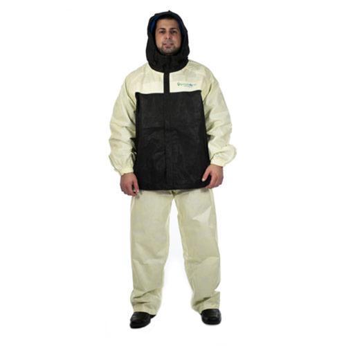 The Envirofit rain jacket and pants set is lightweight, comfortable, breathable and waterproof. The jacket and pants are perfect for fishing, hiking, golf or just about anything outdoors. The jacket contains a mesh liner on the inside, a hidden hood and has rear venting. The pants have elasticized ankles, multiple pockets and either belt loop or draw string closure. It is earth friendly and is recyclable. Reflective Two Tone color Yellow/Black. Size LG.