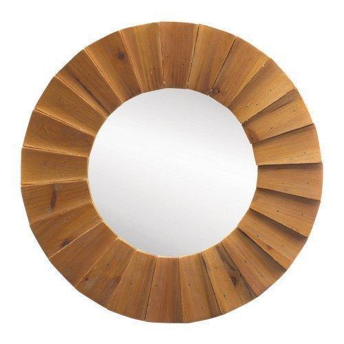 Package: 1 EASleek, a touch rustic, and a whole lot fantastic! This round wall mirror is encased in a wooden frame that looks like overlapping boards that give it a...