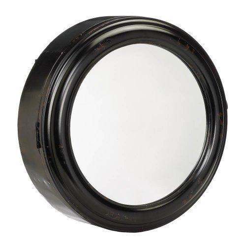 Package: 1 EAModern style ahoy! This cool round wall mirror has a black iron frame that holds a cool secret: Unhook the latch on the side to reveal an interior...