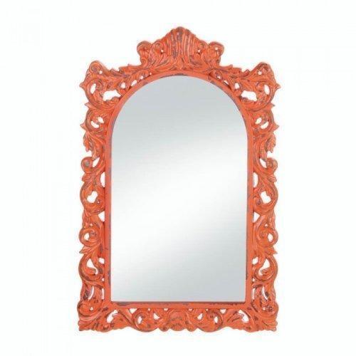 If your room needs both a pop of color and a dramatic focal point, you can have it all with this gorgeous wall mirror. The ornate flourishes of the frame are finished with distressed orange paint that's the perfect mix of stylish drama and timeless style. The arched mirror is a classic shape that will add style to your bare wall!