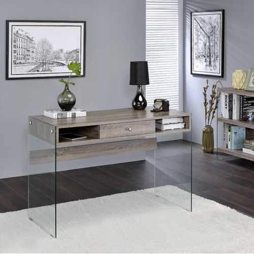 ACME Armon Bookcase in Clear Glass & Gray Oak
