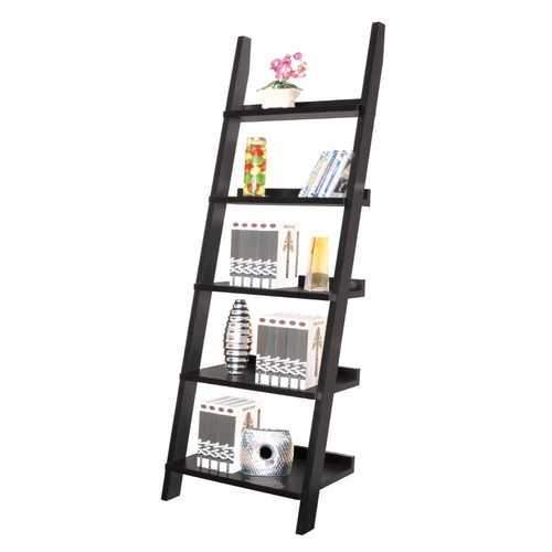 Exhibiting Modern Ladder Bookcase With Five Shelves, Black