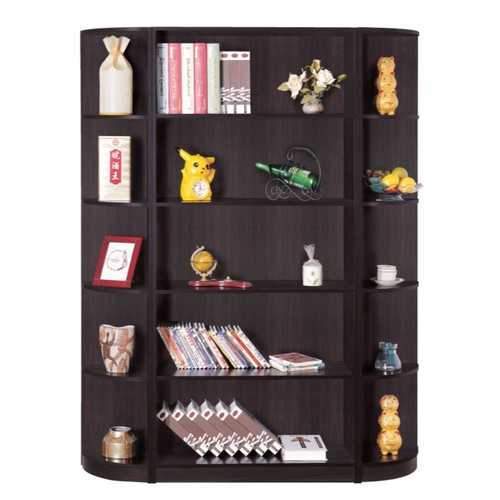 Beautiful dark brown finish corner bookcase has five open shelves offer more than enough space for your besides requirements, whether an alarm clock or a teddy bear or display items. The corner bookcase is finished in a long lasting dark brown laminate. It combines with curve front design. With this embellished corner bookcase you can enhance the beauty of your home decor. This sturdy and elegant corner bookcase is made from durable premium hardwood materials.