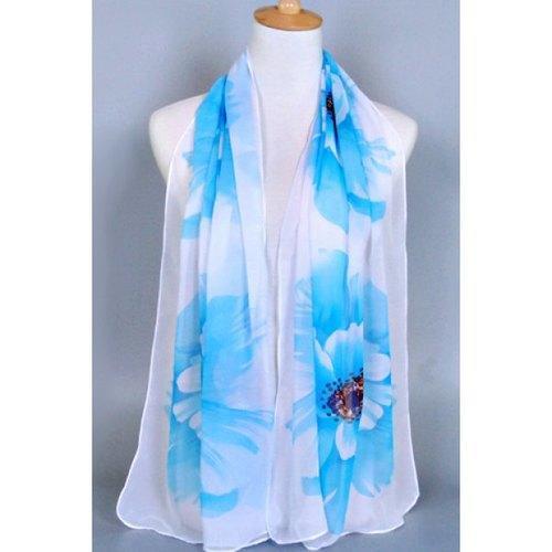 Chic Big Flower Painting Pattern Chiffon Scarf For Women - Light Blue