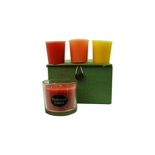 Brand:CANDLE GIFT BOX CHELSEAPINK, GREEN & YELLOW PLAID BOX SET CONTAINS ONE PERSIMMON & QUINCE SMALL GLASS VASE & THREE VOTIVES FEATURING SUMMER CITRUS, GINGER TEA & HONEY AND PEACHES...