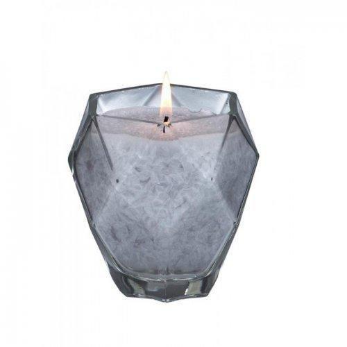 Gem lovers and candle lovers this one's for you! Our 9-ounce Prism Jewel Candle featuring the Moonstone Scent, in one of our Crystal Jewel Glass Candles, is elegance personified. The icy silver candle, made with 100% eco-friendly palm wax, sits in a stunning clear glass container cut just like the finest crystal. It's a looker for sure, but it also has a wonderful fragrance. The Moonstone Scent features the irresistible aroma of ripe pomelo, zesty tangerine and wild jasmine to calm your soul. These great top notes are paired with mild undertones of sweet and fruity strawberries and finished with a kiss of vanilla. Lead and tin free cotton wick.