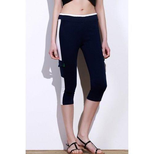 Elastic Waist Color Block Capri Yoga Pants - Purplish Blue L